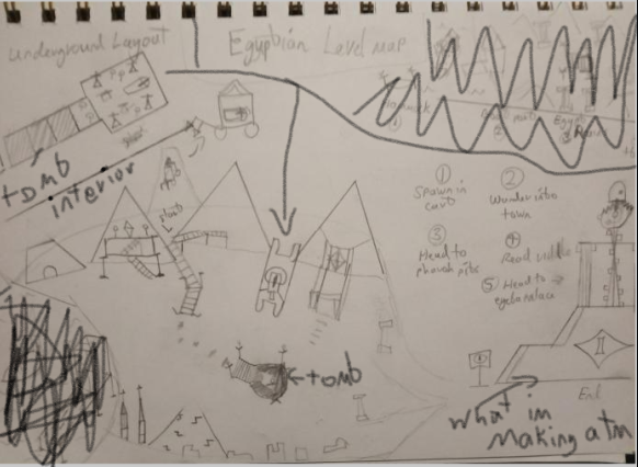 Final overview level map that includes plans for the tomb, Pyramid valley and Eyeba Palace.